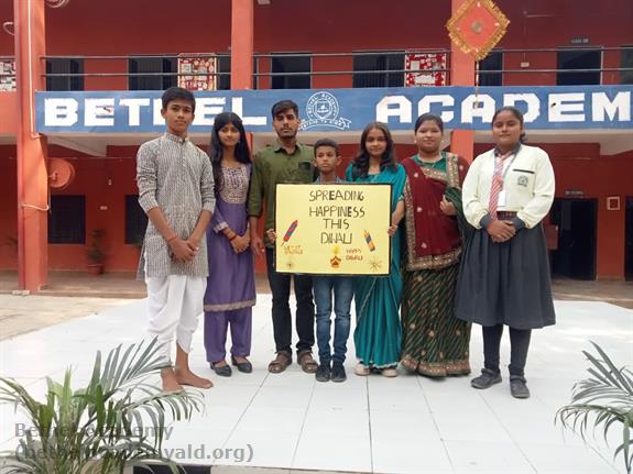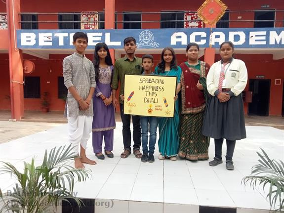 • Description : Diwali was celebrated with great enthusiasm at Bethel Academy on 18th October 2025. The event was held as an Inter-House Competition and divided into three parts — a dance performance by Classes 2 to 5, another by Classes 6 to 8, and skits presented by Classes 9 to 12. All performances showcased the students’ talent, creativity, and teamwork, filling the day with joy and festive spirit. The Principal appreciated the efforts of students and teachers for making the celebration successful. We celebrate Diwali at school to help students understand the festival’s true meaning — the triumph of good over evil and light over darkness — and to promote unity, culture, and responsible celebration.